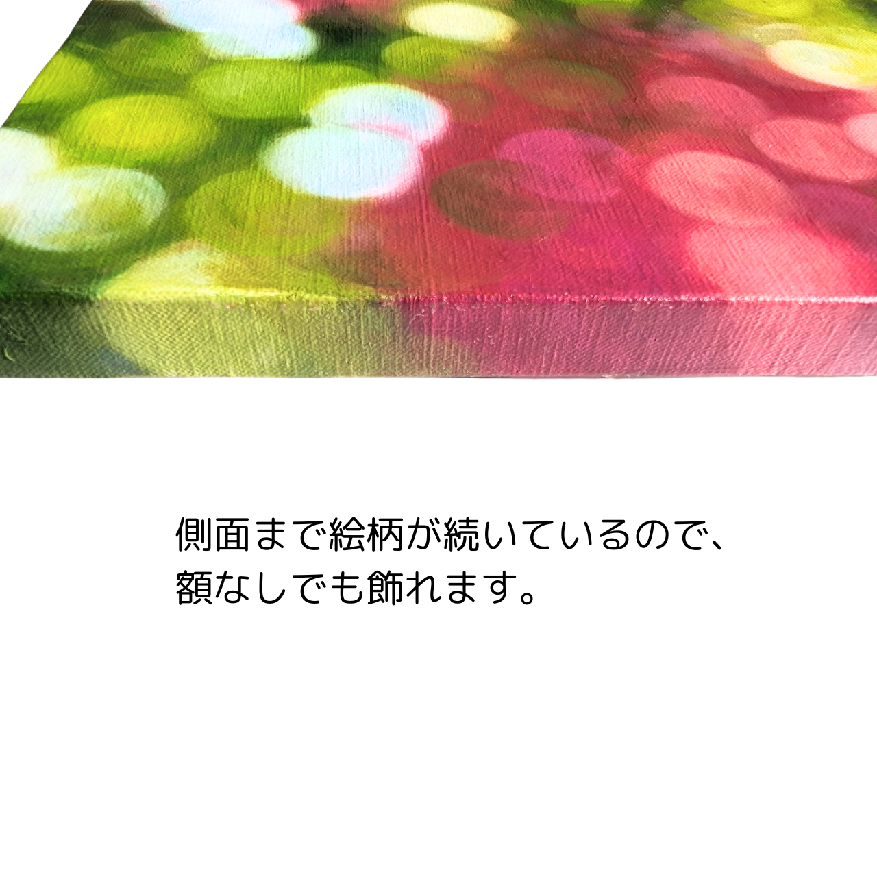 4面サイドに釘は無く、絵柄が続いていますので、額なしでもそのまま掛けられます。