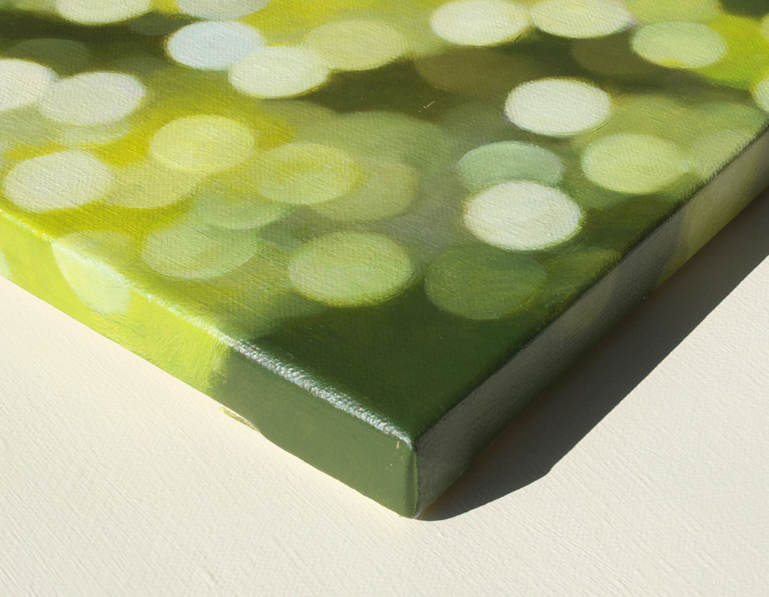 Painted on a 2 cm deep canvas; the sides are continuous, allowing display without a frame.